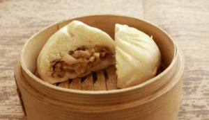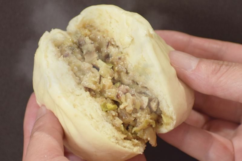 The wrapper uses soy milk, domestic wheat, and fresh yeast for a fluffy, chewy texture.