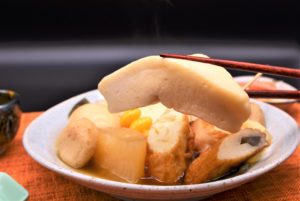 主原料は北海道産の助宗タラすり身や国産のサメ肉や小魚。焼き・蒸し・揚げの練り物がバランスよく、最後に残ったスープまで美味しく召し上がれるよう設計したおでん種セット。どれも余計な添加物やツナギは使用せず、魚の本来の旨味を引き出しました。スープはエキス類は使用せず4種類(サバ・カツオ・昆布・椎茸)の原料から旨味を抽出したスープとなります。