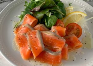 「みやぎサーモン」は、脂がしっかりのりながらもくどさがなく、口に含むと広がる甘みと旨味が特徴です。